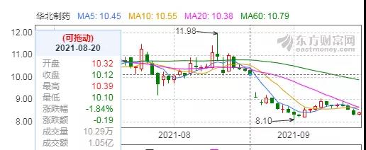 受断供事件影响,华北制药的股价近日连续走低,从10.32元/股降至8.4元/股,市值直接蒸发近35亿!