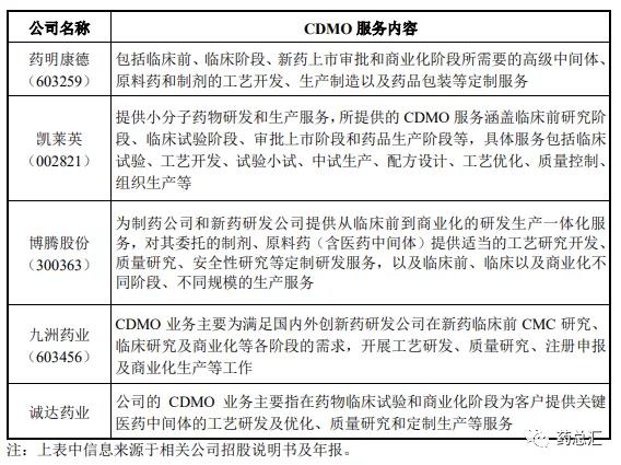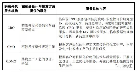 CDMO企业与CMO、CRO企业在药品设计与研发方面的差异: