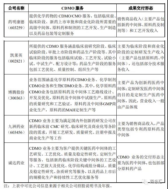 第四、公司 CDMO 服务内容及成果交付形态与同行业可比上市公司的 CDMO 服务内容及成果交付形态基本一致。具体比较如下: