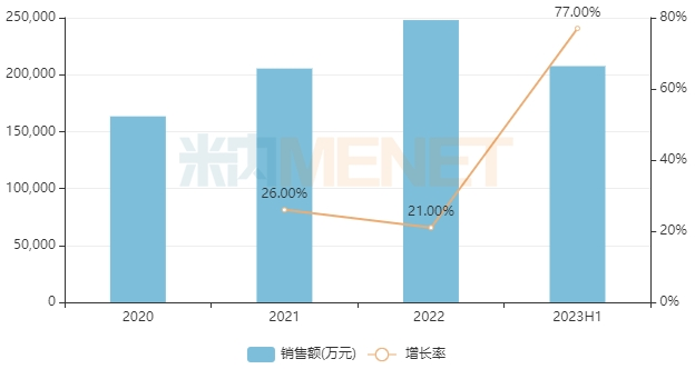 复方黄柏液涂剂为国家医保乙类产品,具有清热解毒、消肿祛腐等功效,用于疮疡溃后,伤口感染,属阳证者。该产品近年来在中国三大终端六大市场的销售额均以两位数的增速增长,2022年突破8亿元,2023上半年接近5亿元,为中国公立医疗机构终端最畅销的皮肤科中成药。