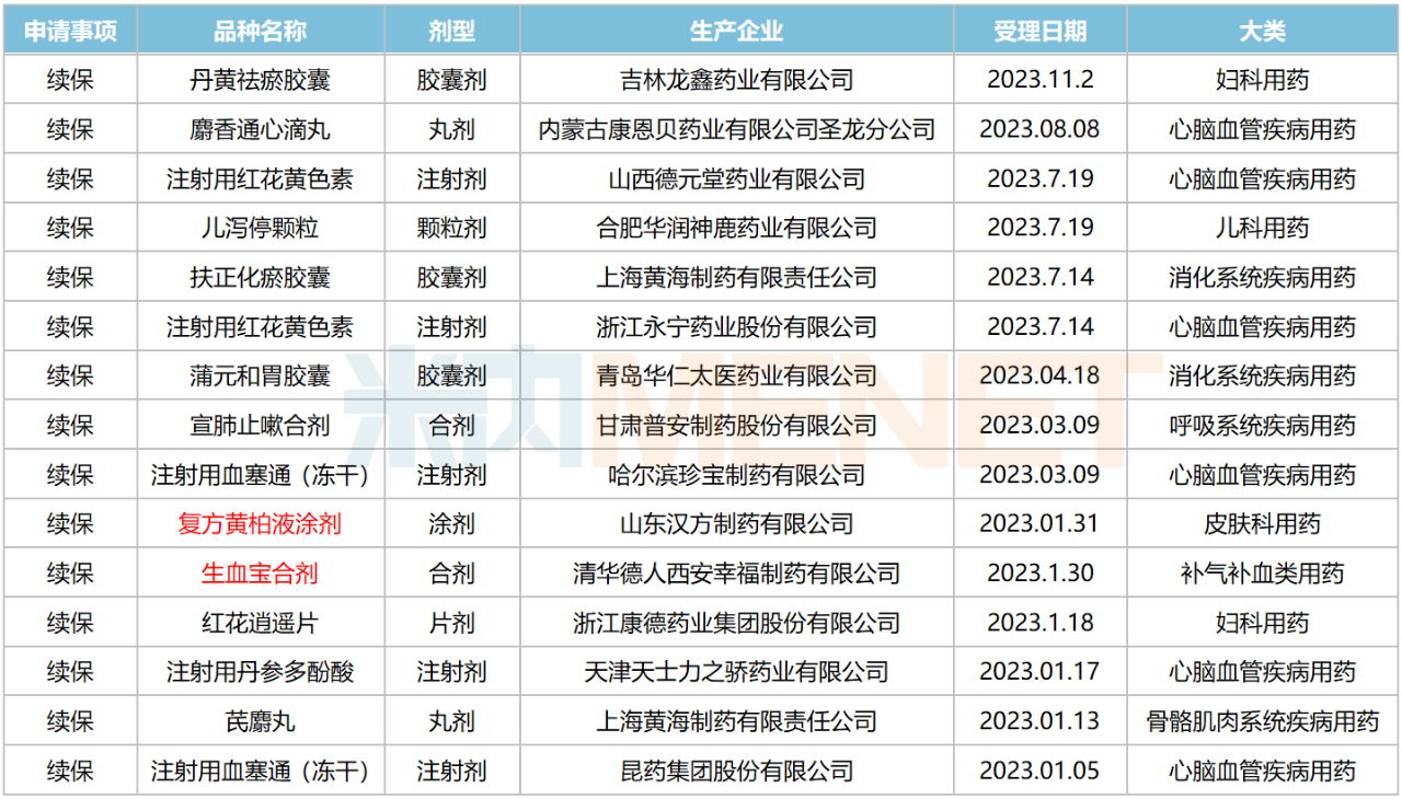 2023年申请续保的中成药
