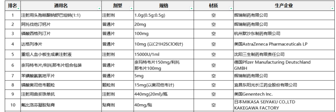 另外,阿斯利康生产的达格列净片从第八上升到第四。